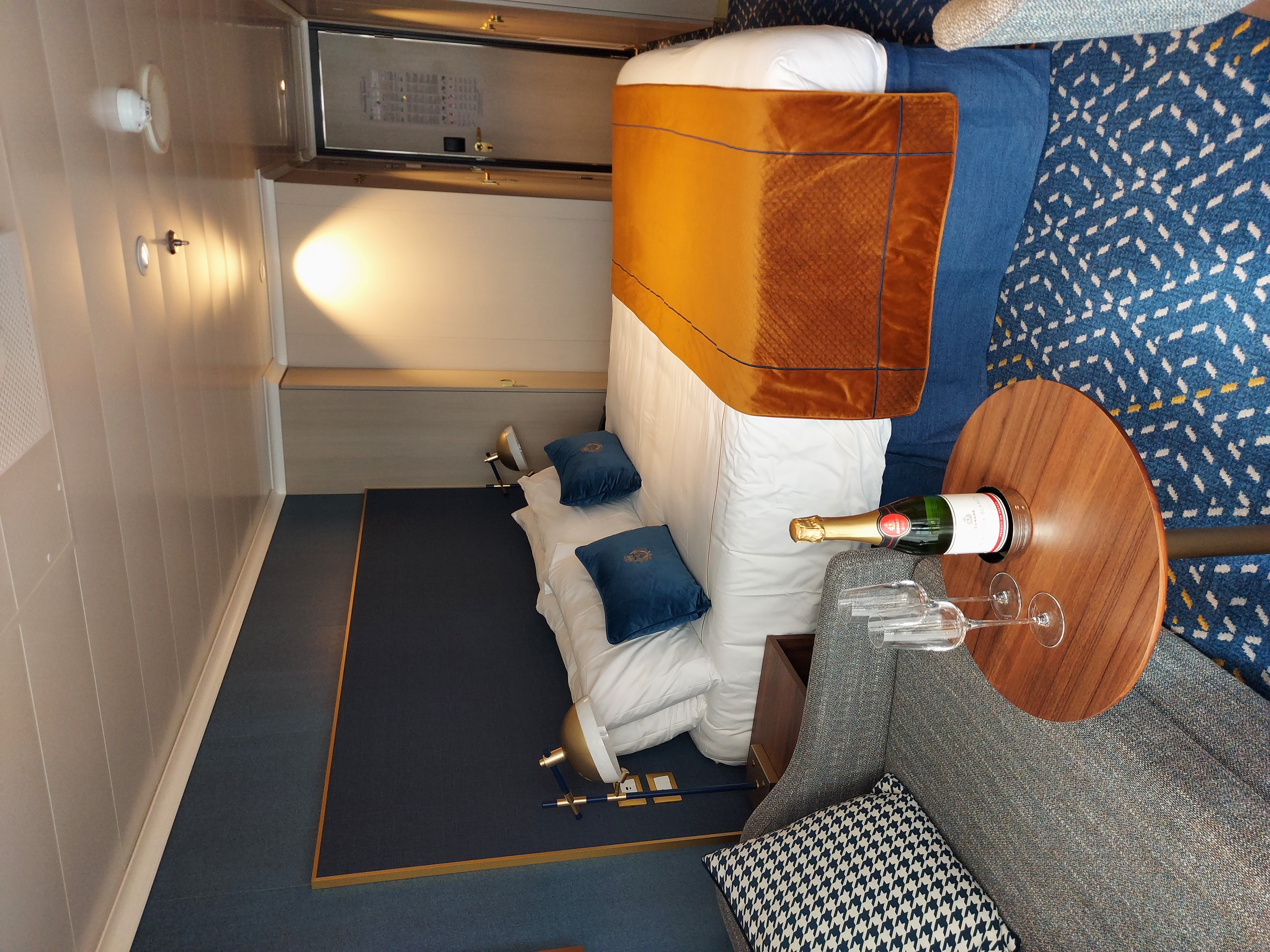 Wir reisten in einer Britannia Club Balkonkabine. Die Britannia Club Balkonkabine auf der Queen Anne bietet eleganten Komfort und exklusive Privilegien. Gäste geniessen einen privaten Balkon mit herrlichem Meerblick und den Zugang zum Britannia Club Restaurant, wo sie flexibel und à la carte speisen können – ganz ohne feste Tischzeiten. Hochwertige Materialien, dezente Farben und das zeitlos britische Design schaffen eine Atmosphäre von Ruhe und Luxus. Perfekt für alle, die das Cunard-Erlebnis mit einem Hauch mehr Exklusivität geniessen möchten.